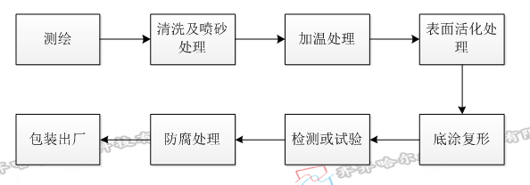 (1)將所有要進行修復防腐作業表面進行清洗預處理,將所有污物沖洗干凈。